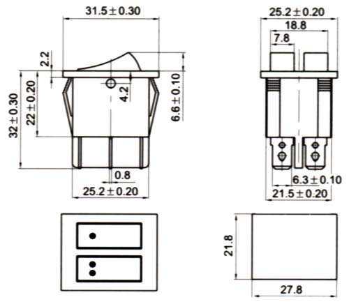 |  | | 型號(hào)規(guī)格:KCD822系列 | 中文命名:822船形開關(guān) |