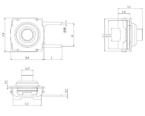 |  | | 型號規(guī)格:WS050系列 | 中文命名:050黑防水橫二腳輕觸 |